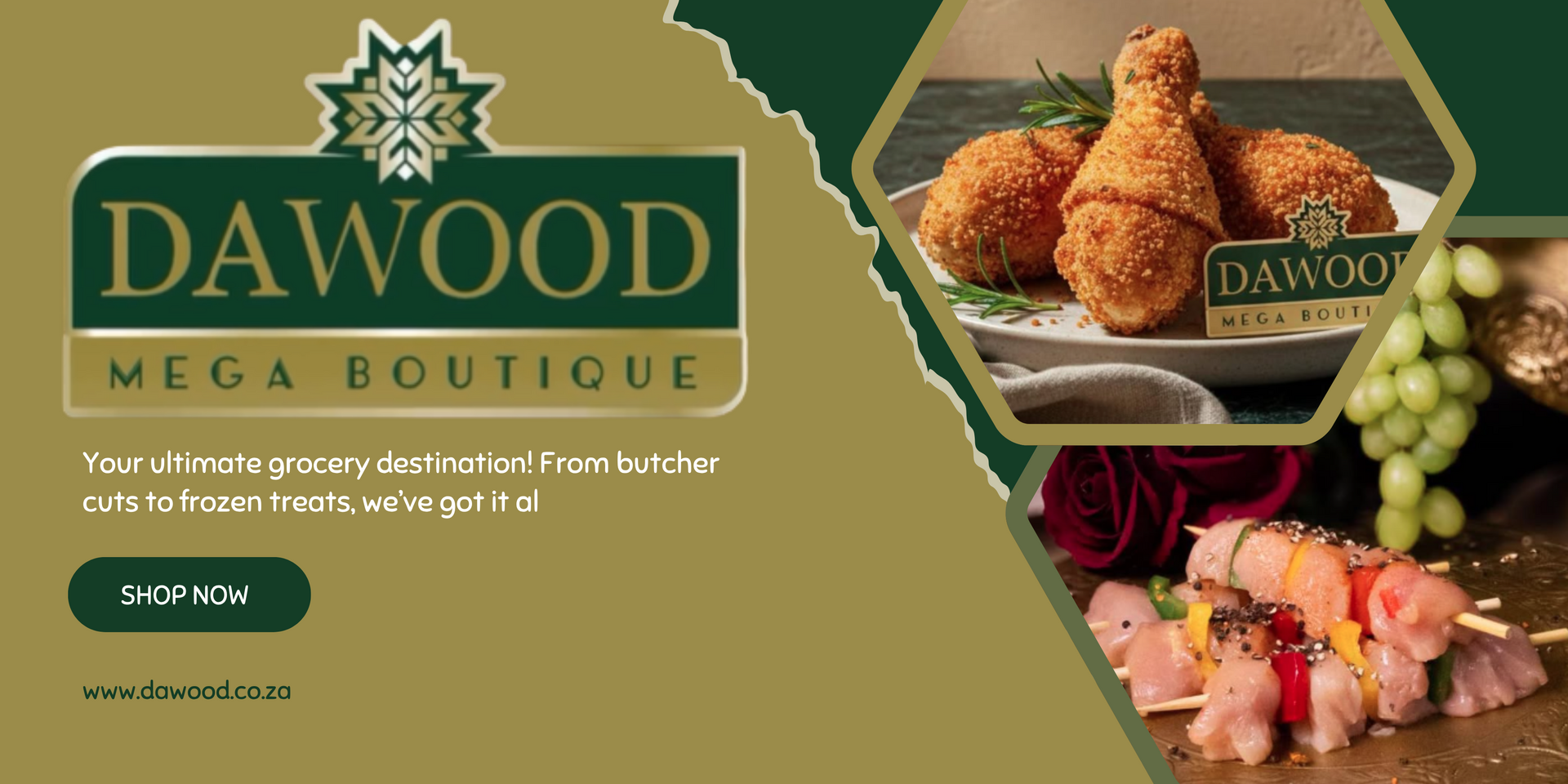Dawood Mega Boutique (located at Westwood Mall, Sherwood, Durban) is a premium food retail division of the Dawood Group, positioning itself as a one-stop lifestyle food destination combining high-quality halal meats, fresh produce, household essentials and speciality food items.