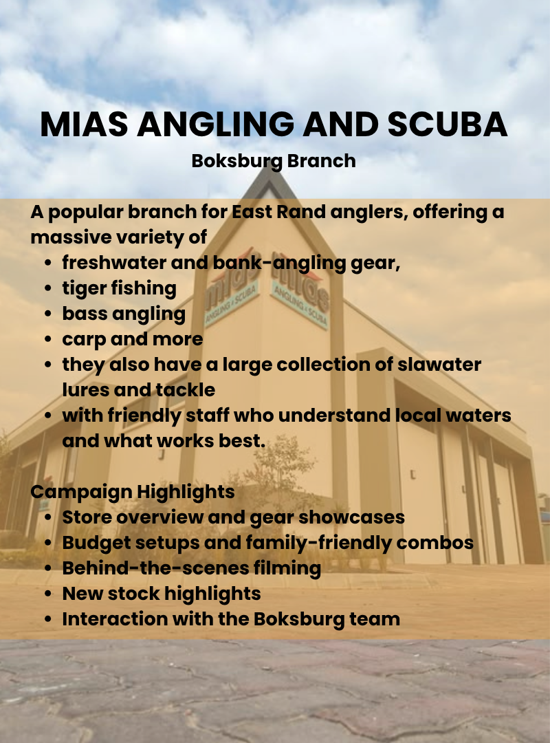Mias Angling & Scuba is one of South Africa’s most established and trusted outdoor retailers. With massive product ranges, knowledgeable staff and stores that feel like home to every angler, Mias remains a go-to destination for both beginners and seasoned pros.
